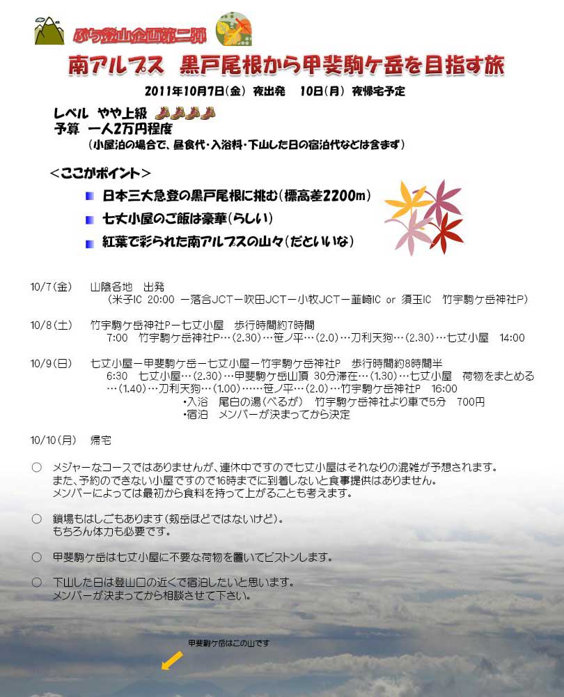 南アルプス 甲斐駒ケ岳ツアー開催だ!!