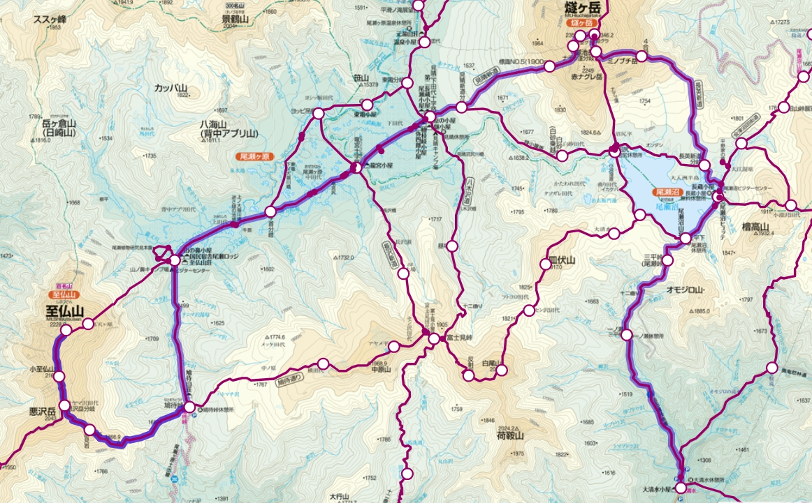 2日目 見晴~燧ヶ岳~長蔵小屋~大清水 10時間45分 / 16.3km 下山後に下界(前橋市?)泊