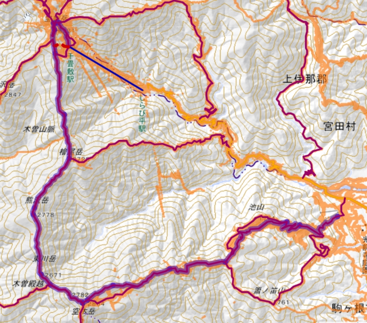 1日目 伊奈川ダム-越百山-空木岳-(木曽殿山荘) 12時間 / 14.5km