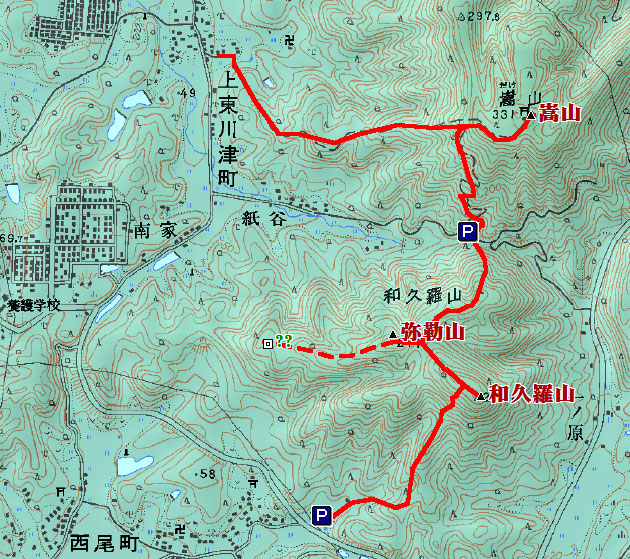 嵩山、和久羅山登山のマップ
