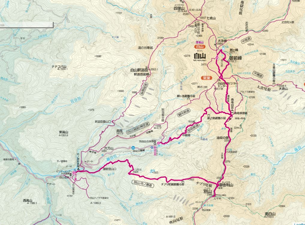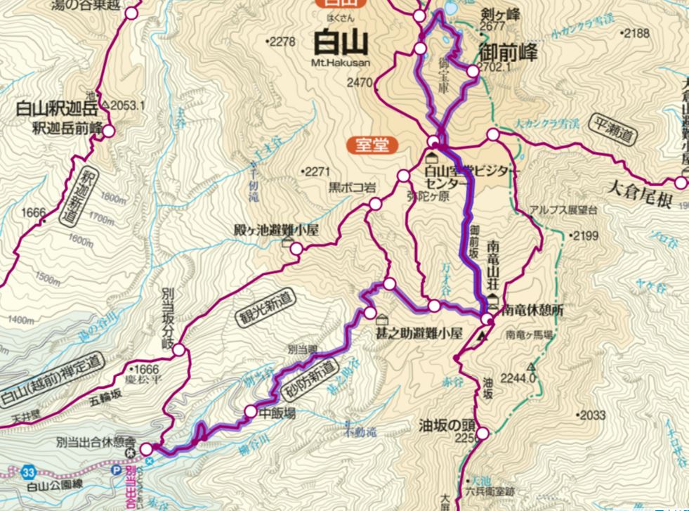 ③南竜山荘~別山(2399m)登って、市ノ瀬下山 (下図)