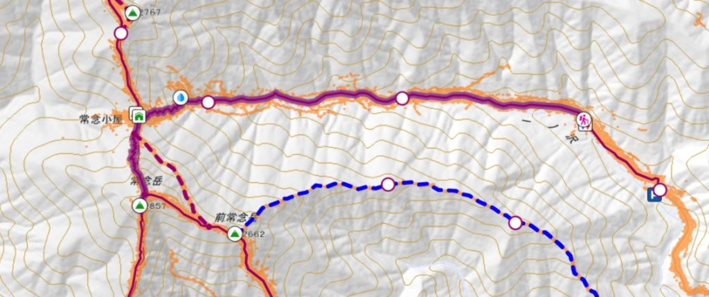 1日目 一ノ沢-常念小屋-常念岳-常念小屋-(大天荘) 9時間44分 / 12.8km