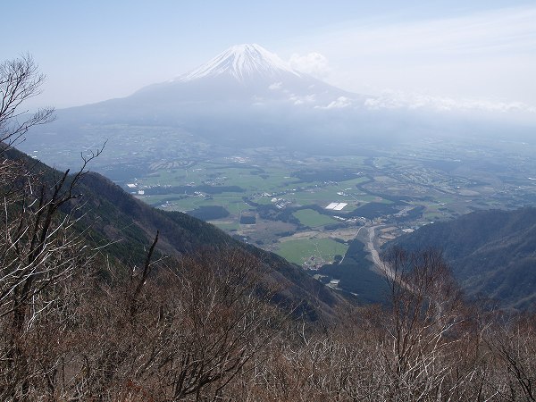 毛無山と富士山の間には遮る高い山がなく20kmと離れていないため、富士山をとても間近に見ることができます。肉眼でも、剣ヶ峰大沢のガレ場が見えるほどです。眼下に広がる広大な朝霧高原と富士山の眺めは絶景です!