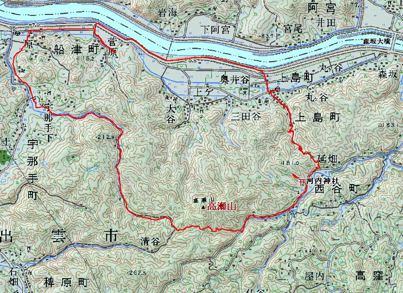 以前登った斐川町の高瀬山 から南西へ5,6km離れた場所にあるもうひとつの高瀬山だ。
