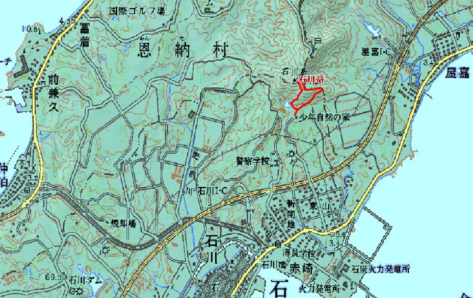ネットで調べてみると 見えてた山はうるま市と恩納村の境界にある石川岳(204m)。登山ルートもあるようだ。