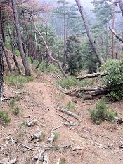 峠に到着すると、もはや道はなく、踏みあとを探索しながらの旅となった。