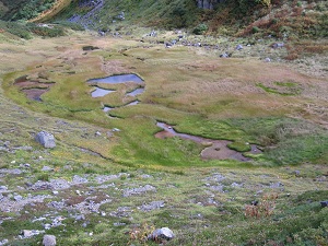 ここからみくりが池や血の池、リンドウ池などの池を見学し