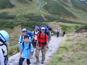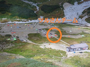 雷鳥沢ヒュッテの手前で、テント設営を終えたツルさんチームと遭遇♪