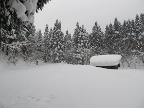 扉の隙間から入り込んだ雪が中で積もっていた。