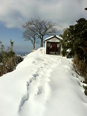 上部で、正参道と行者コースの交差点から、行者コースに入る。