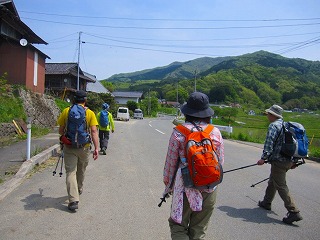 車道→田んぼわきの道→林道 歩くこと約1時間。