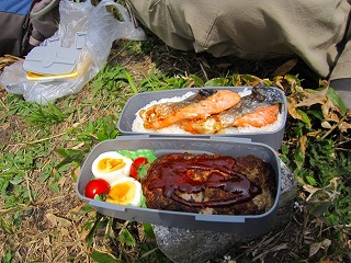 おじさまが3人、お弁当をひろげておられました。