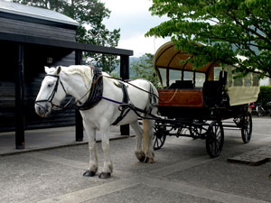 散策後の待ち合わせ場所由布院駅にいたお馬さん。