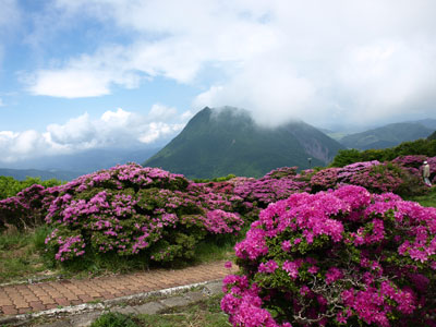 ロープウェイから歩いて10分標高1375m鶴見岳山頂到着