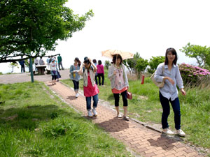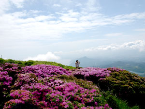 そんな美しいミヤマキリシマさんに囲まれて写真撮影をするアッキーナ。