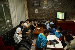 あ、もしもし俺だけど、うん、もう着いとるけん、うん、
