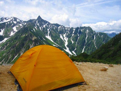 てなわけで、槍を真ん前に見れる特等席にテント設営。槍にしばし興奮(>▽<)