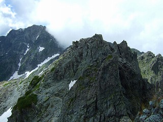 これから北穂へ向かうと??まわりはだいぶガスってきてます。