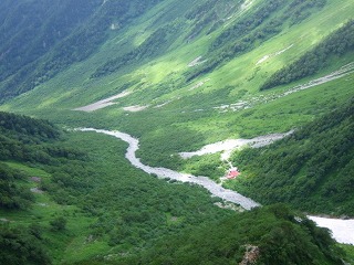 11時 紀美子平から重太郎新道を岳沢小屋へ。