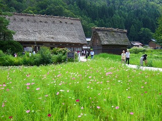 ひ:「この合掌造り、ひときわ大きいわねぇ~