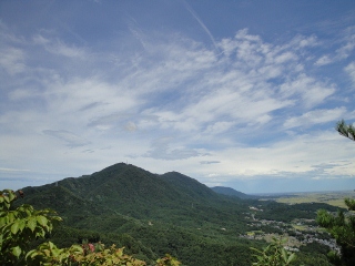 途中で視界が開けると、彌彦山と多宝山、そして角田山が見えました。