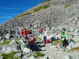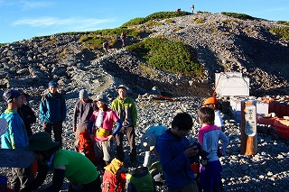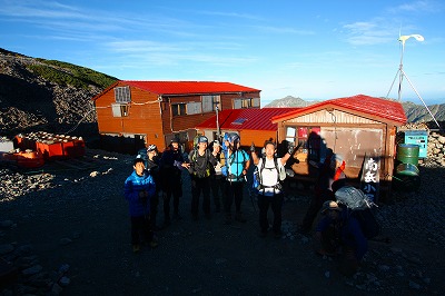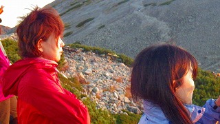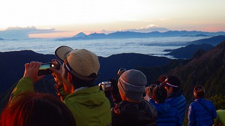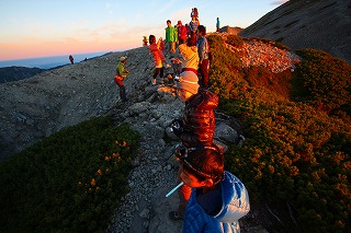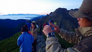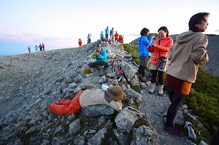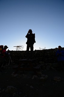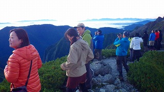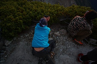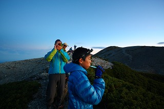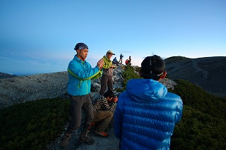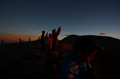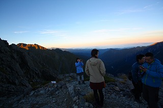 5:16、南岳小屋近くからご来光を待つマメンバー。