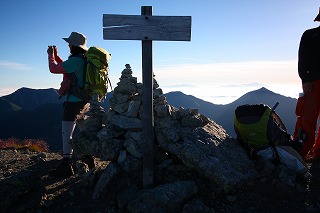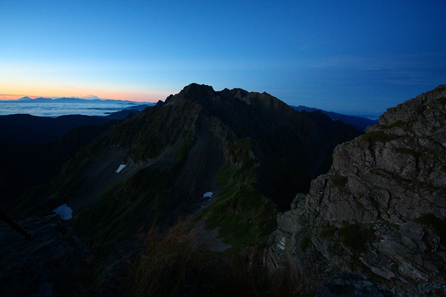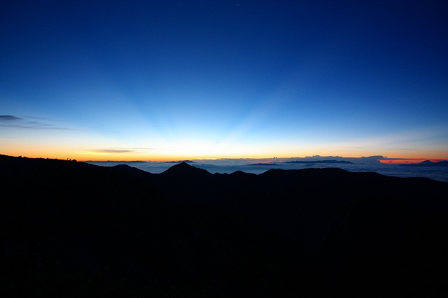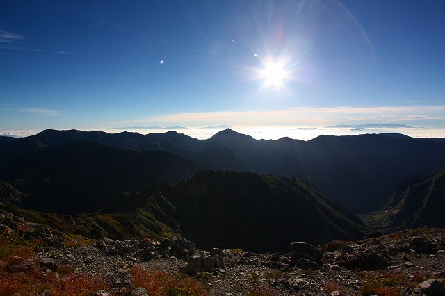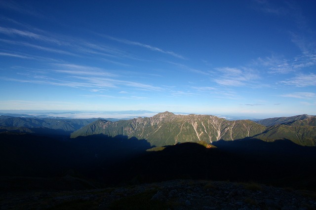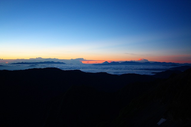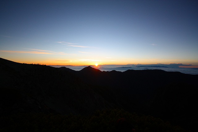 日の出は常念岳付近のようだ。(中央の三角の山)