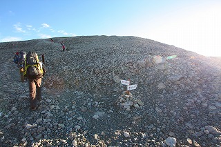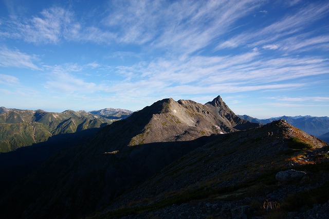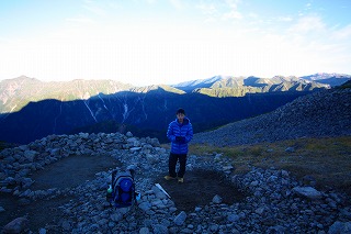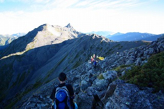で、今日の行程は、ここからまっすぐ北上し、南岳~中岳~大喰岳を縦走して槍ヶ岳に登る。