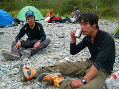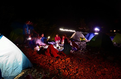 日が暮れると野外飲み会に突入。