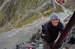 穂先にへばり付き、3時間も槍ヶ岳からの絶景を楽しめたと思えば贅沢な時間でもあった。