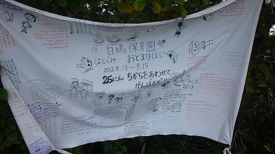 真新しい保育園の登山記念旗が結んでありました。