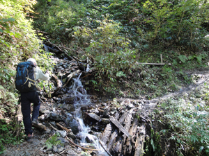 最初は林道歩きが続きますが、やがて沢沿いの山道に変わります