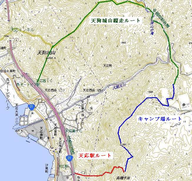 JR天応駅から山頂へ直登するコースの予定。キャンプ場からでも山頂に行けます。