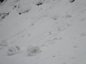 斜面を転がり落ちた雪玉がロールケーキになっていました