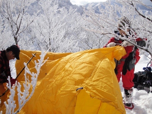ツェルトを張ってお昼ご飯を食べるのです!