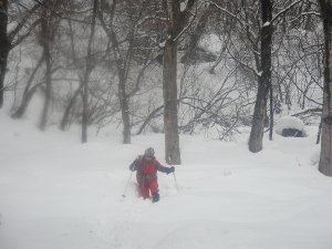 下りは新雪の上をフリーダムに駆け下ります