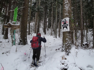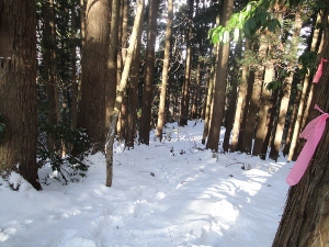ピンクのテープを目印に円山経由で下山します