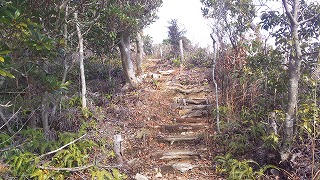 低山とは言え、海抜数メートルから登るので急だし岩肌で険しい…