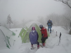 テントの雪を払い落としてから中で一服
