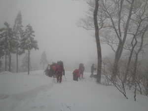 もちろん昨日のトレースなど影も形もないので全員で交代しながら山頂までラッセルです