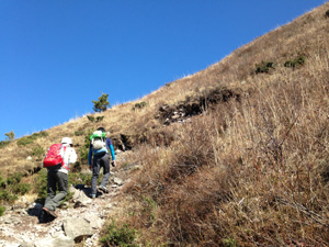 南の斜面はずっとトラバースだなんてつゆ知らず、気を使う下山となりましたが