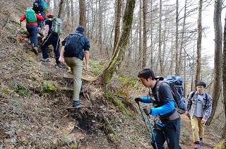 寒風吹き荒れるガレ場登りが始まった。