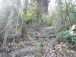 さて、どこから入ればいいのやらとうろうろしてみると、登山道らしき踏み跡を見つけた。