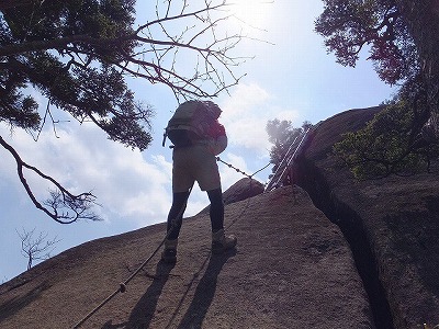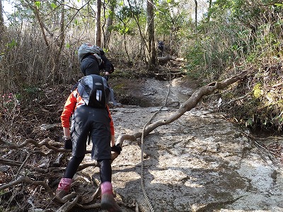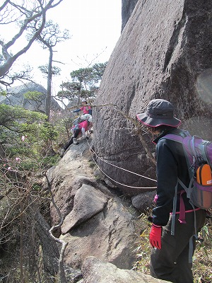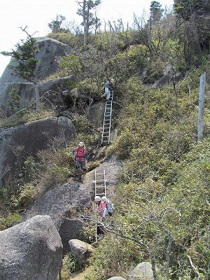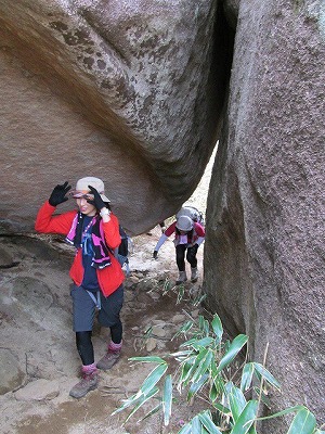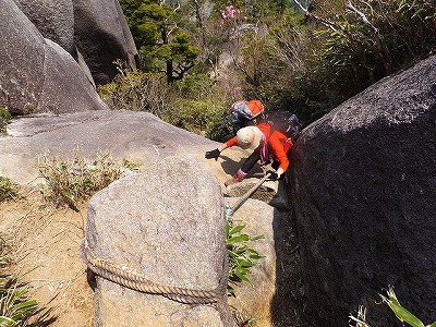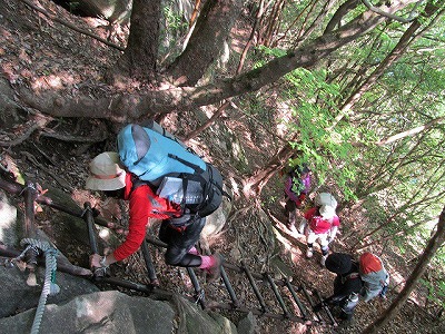 ハシゴ+ロープの難所。 ここは象岩よりおっかなかった気がする・・・(^_^;)