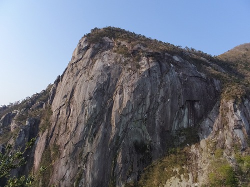 小積ダキの大岩壁。下から見るのとは全く違う姿をしています。