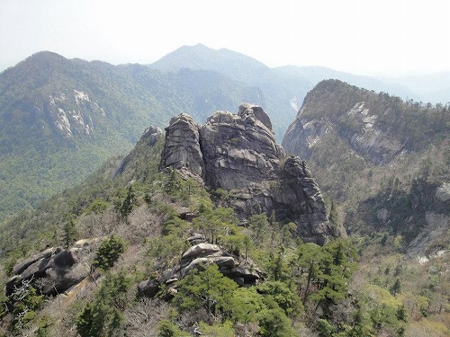 あの尖って見える大岩が小積ダキ(こづみだき)。 後であの上にも立てるんだな… すげぇ。