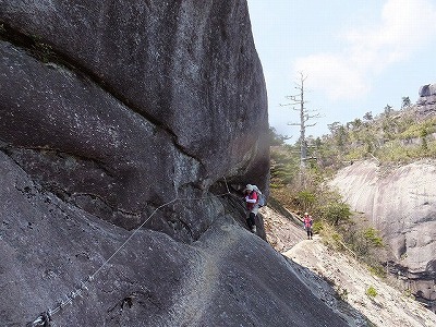 ここから一旦岩尾根を降りていきます。 緊張のトラバース。