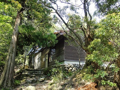 16:57 無事に大崩山荘に到着しました。 無人の避難小屋ですが、GWとあってさすがに混雑。