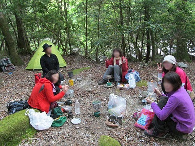 さあ、明るいうちに山ゴハンだ! みんな美味しそうなメニューを用意してきてます。