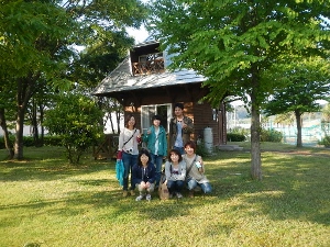 ・・・の前に宿泊したログハウスの前で記念撮影